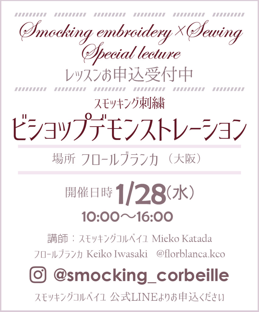 スモッキングコルベイユ×フロールブランカのコラボ講座は今回で2回目になります。